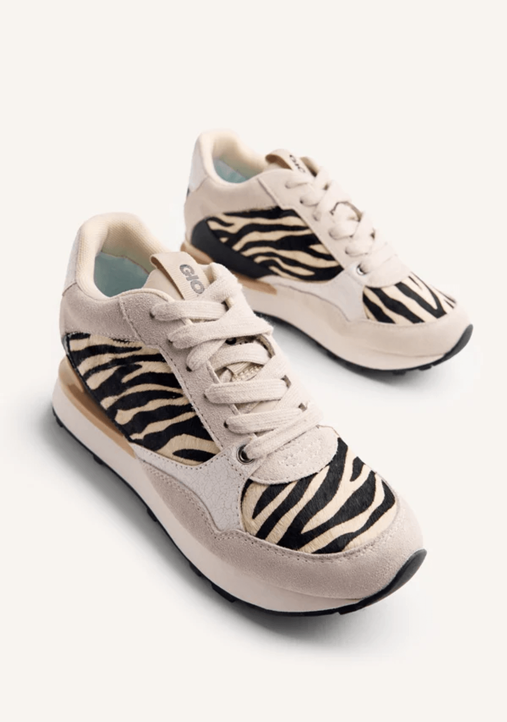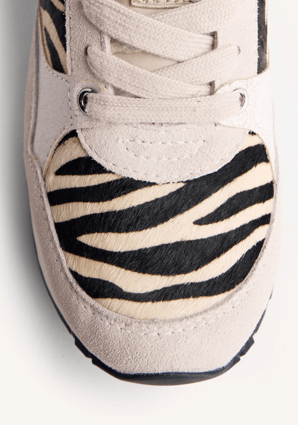 Zapatillas de ante con cuña interior. Combinan un estampado animal con efecto piel y detalles craquelados.