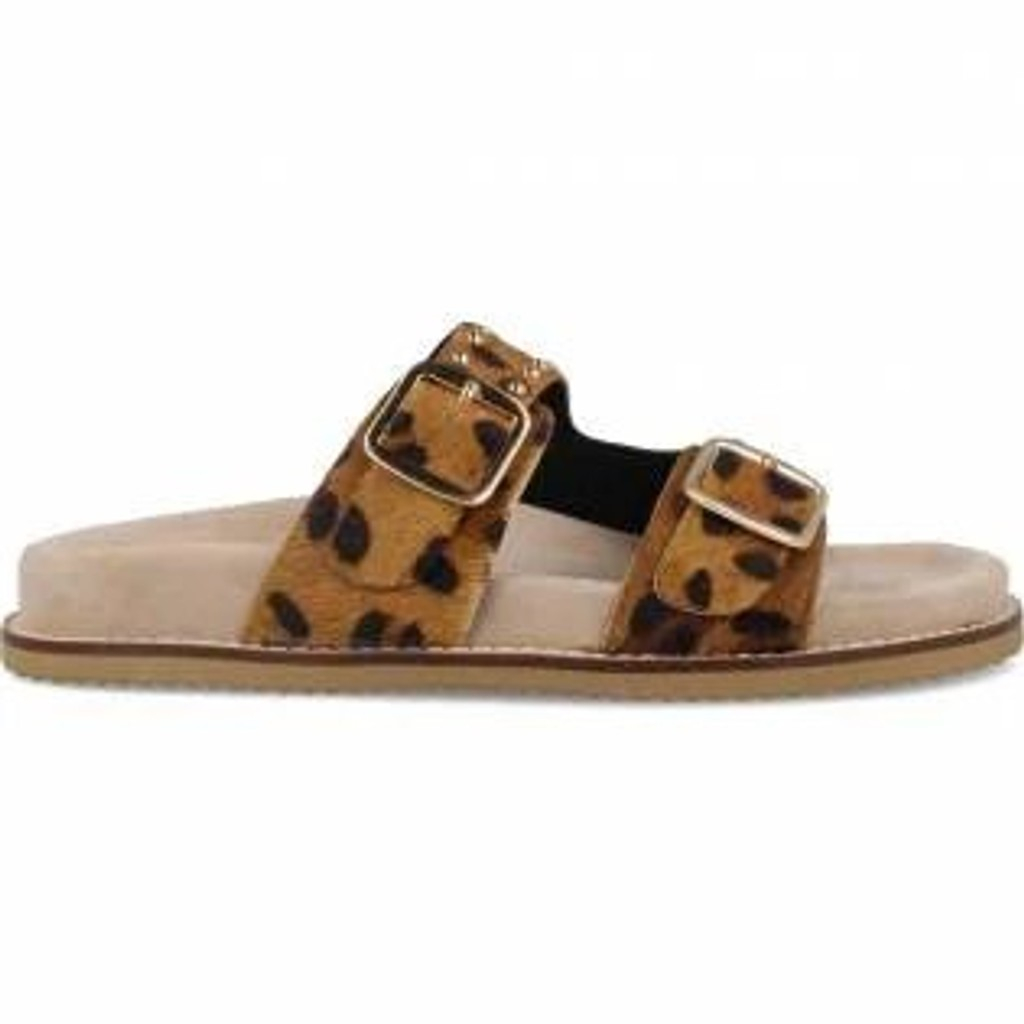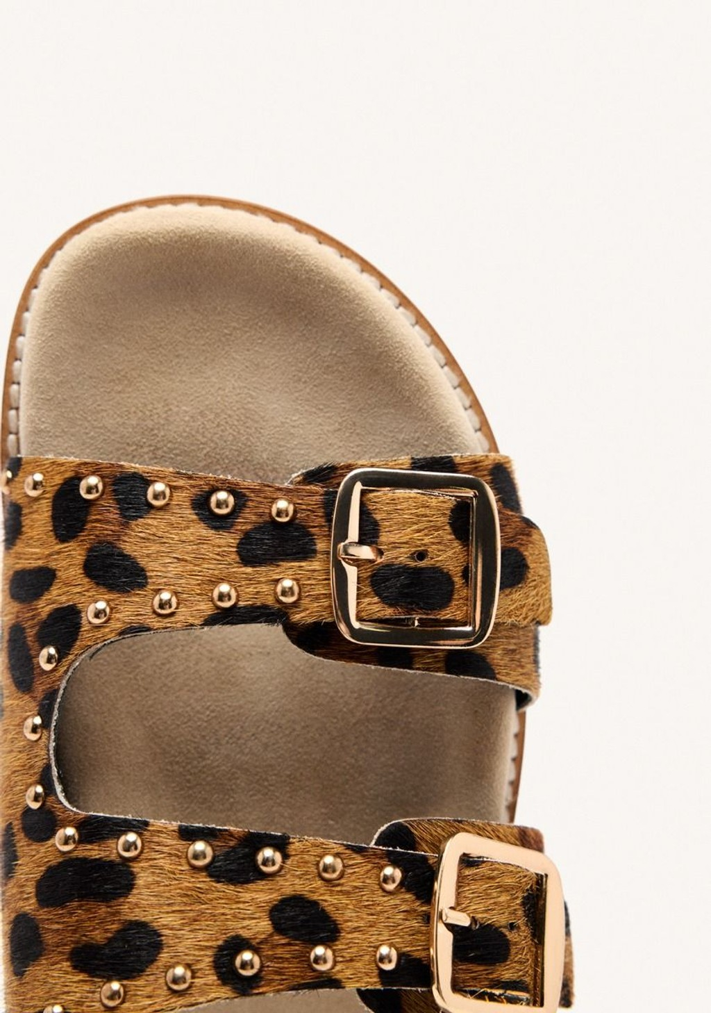 Sandalia plana de piel con doble hebilla.