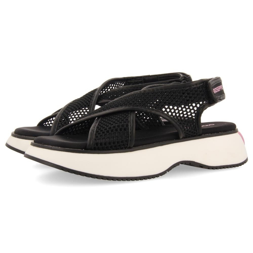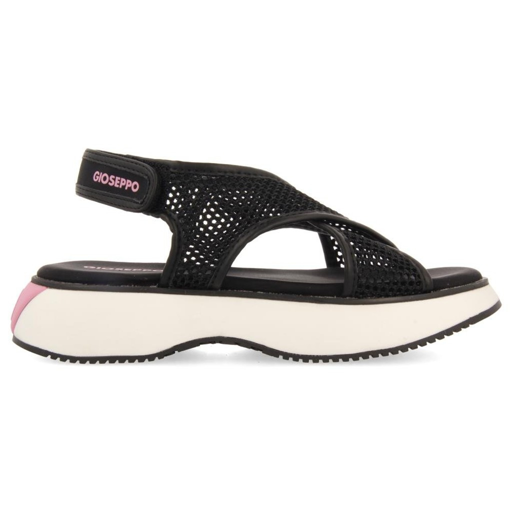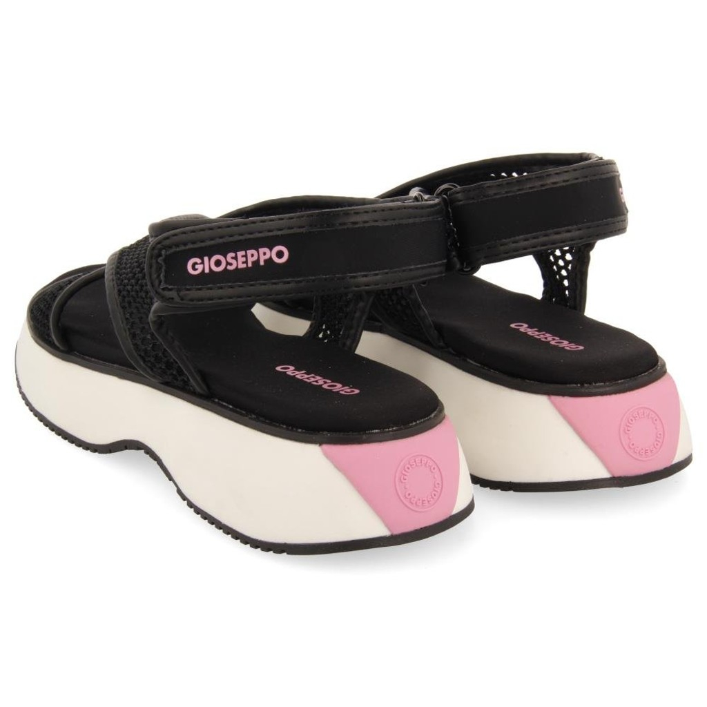 ¡Súper cómodo! Sandalias deportivas color negro con malla y cierre ajustable en el talón. Tiene una suela voluminosa y curvada con combinación de piezas en diferentes tonos y materiales. La plantilla está acolchada. Descubre las sandalias abiertas de la nueva temporada en Gioseppo Mujer.