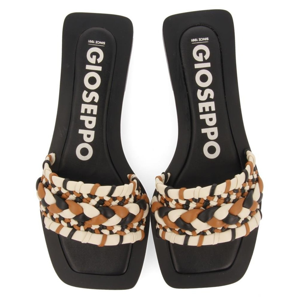 ¡Échales un vistazo! Sandalias planas con puntera cuadrada y pala trenzada multicolor. Plantillas de piel con amortiguación de látex que garantiza un extra de comodidad. Plantillas fabricadas en piel producida en curtidurías que siguen un proceso de curtido más sostenible y acorde a los estándares del Leather Working Group. Suelas flexibles. No te pierdas las últimas sandalias de mujer de esta temporada de la nueva Colección Mujer Gioseppo.