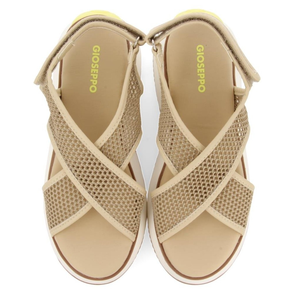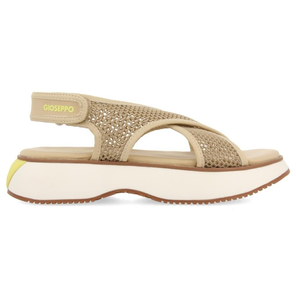 ¡Súper cómodo! Sandalias deportivas color beige con malla y cierre ajustable en el talón. Tiene una suela voluminosa y curvada con combinación de piezas en diferentes tonos y materiales. La plantilla está acolchada. Descubre las sandalias abiertas de la nueva temporada en Gioseppo Mujer.