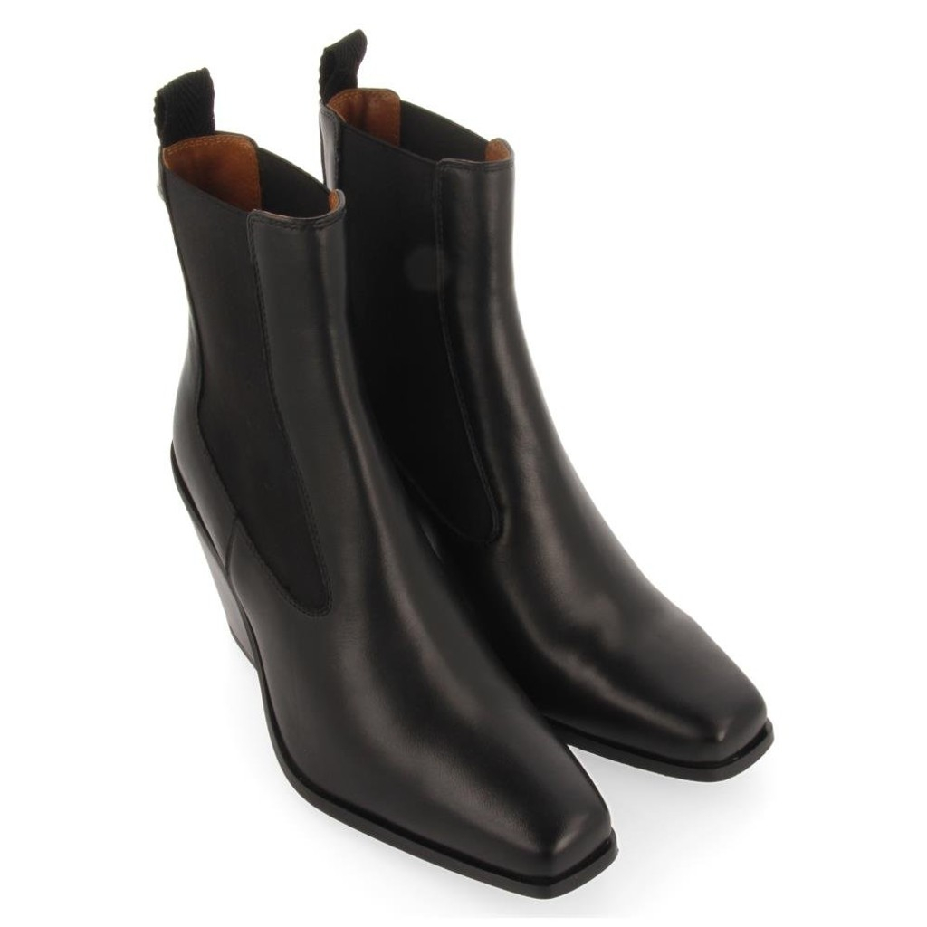 Botín estilo cowboy totalmente en piel con elásticos laterales y puntera cuadrada para mujer.