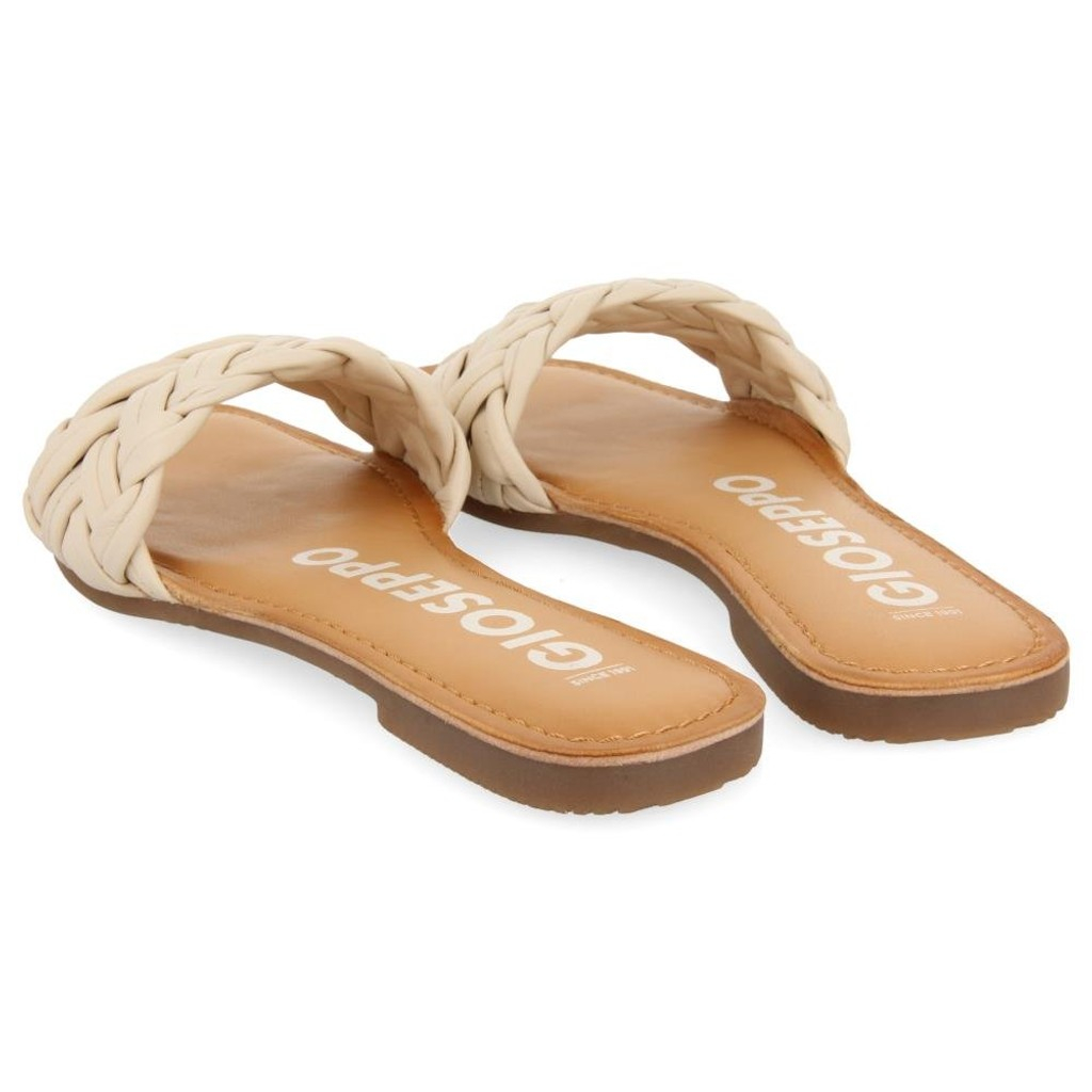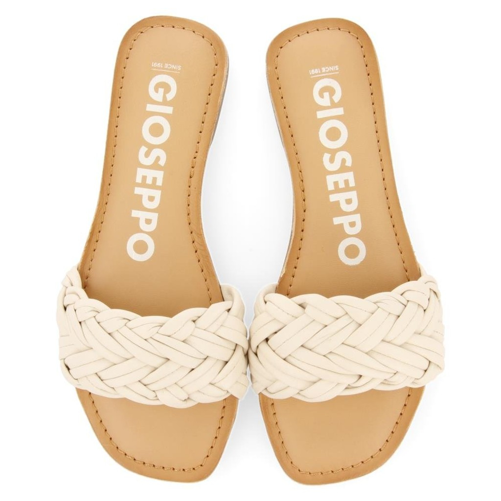 Comodidad y estilo. Sandalias planas con pala trenzada en color blanco roto. Plantillas de piel con amortiguación de látex que garantiza un extra de comodidad. Suelas flexibles. Plantillas fabricadas en piel producida en curtidurías que siguen un proceso de curtido más sostenible y acorde a los estándares del Leather Working Group. No te pierdas las últimas sandalias de mujer de esta temporada.