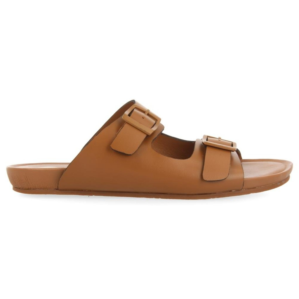 ¡Firma esta tendencia! Sandalias bio de piel en color café con doble hebilla. Plantilla de piel suave acolchada con látex. Suela muy flexible para garantizar el máximo confort.