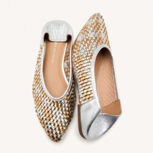 Bailarinas doradas totalmente en piel muy suave con puntera en punta. Plantillas de piel con amortiguación de látex. Forro de cuero. Suelas de corcho finas y muy flexibles para garantizar un mayor confort. ¡Te los pondrás una y otra vez!
