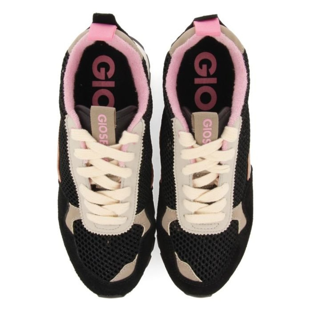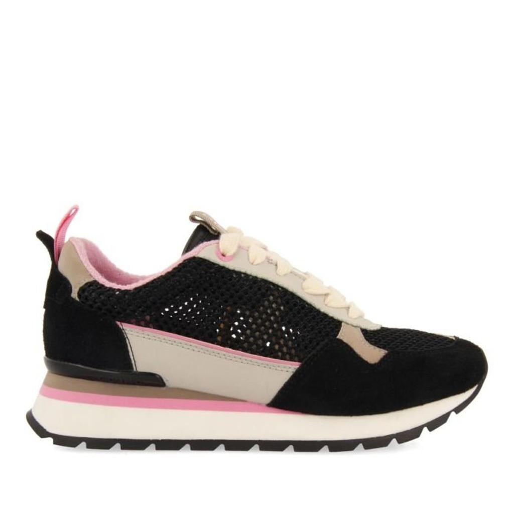 Muy ligero y súper fresco :). Deportivas negras con tejido de rejilla de algodón que combinan piezas en tonos dorados y rosas.