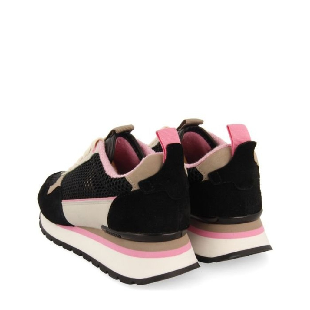 Añadir al seguimiento de preciosMuy ligero y súper fresco :). Deportivas negras con tejido de rejilla de algodón que combinan piezas en tonos dorados y rosas. La puntera y el talón son de ante. Plantilla anatómica extraíble. El hilo de los cordones utilizados en la producción de este modelo cuenta con el sello de garantía certificado del Global Organic Textile Standard (GOTS). El hilo de los tejidos utilizados en la producción del forro de este modelo cuenta con el sello de garantía certificado del Global Recycled Standard (GRS). Este modelo cuenta con el sello PODOLOGIC, que certifica que ha sido fabricado con hormas más anchas, mejorando su flexibilidad. Los modelos PODOLOGIC también se adaptan perfectamente a los pies más sensibles y delicados consiguiendo el mayor confort. Este proyecto ha sido diseñado en colaboración con el Colegio Oficial de Podólogos de la Comunidad Valenciana (ICOPCV) para promover el cuidado, el conocimiento y la atención que requiere la salud del pie. Altura del tacón 4 cm.