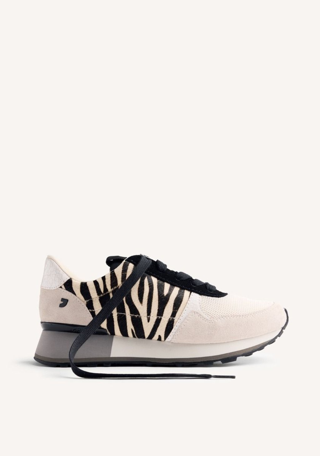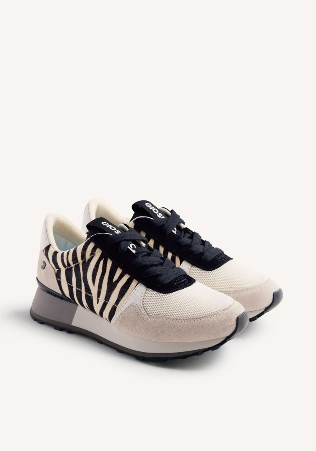 Zapatillas de ante con estampado animal efecto pelo, detalles de color y detalles craquelados.