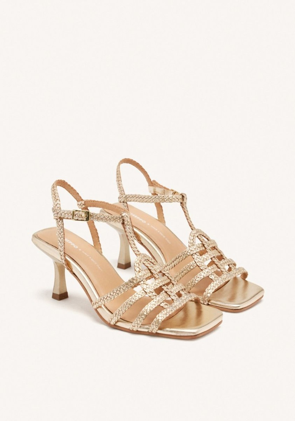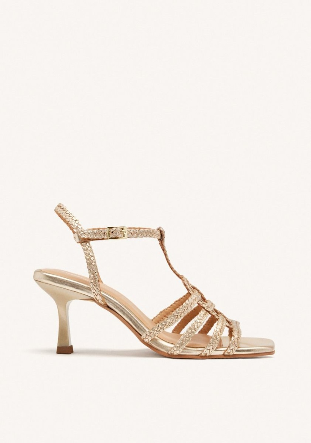 Sandalia totalmente en cuero. Color platinum trensada.